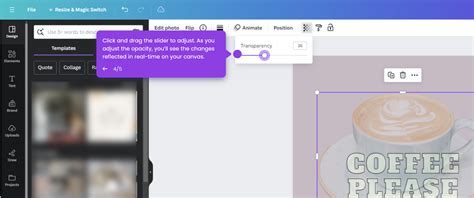 how to decrease image opacity in canva