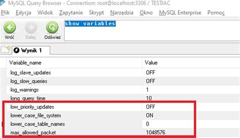 unknown variable 'lower_case_table_names=1'